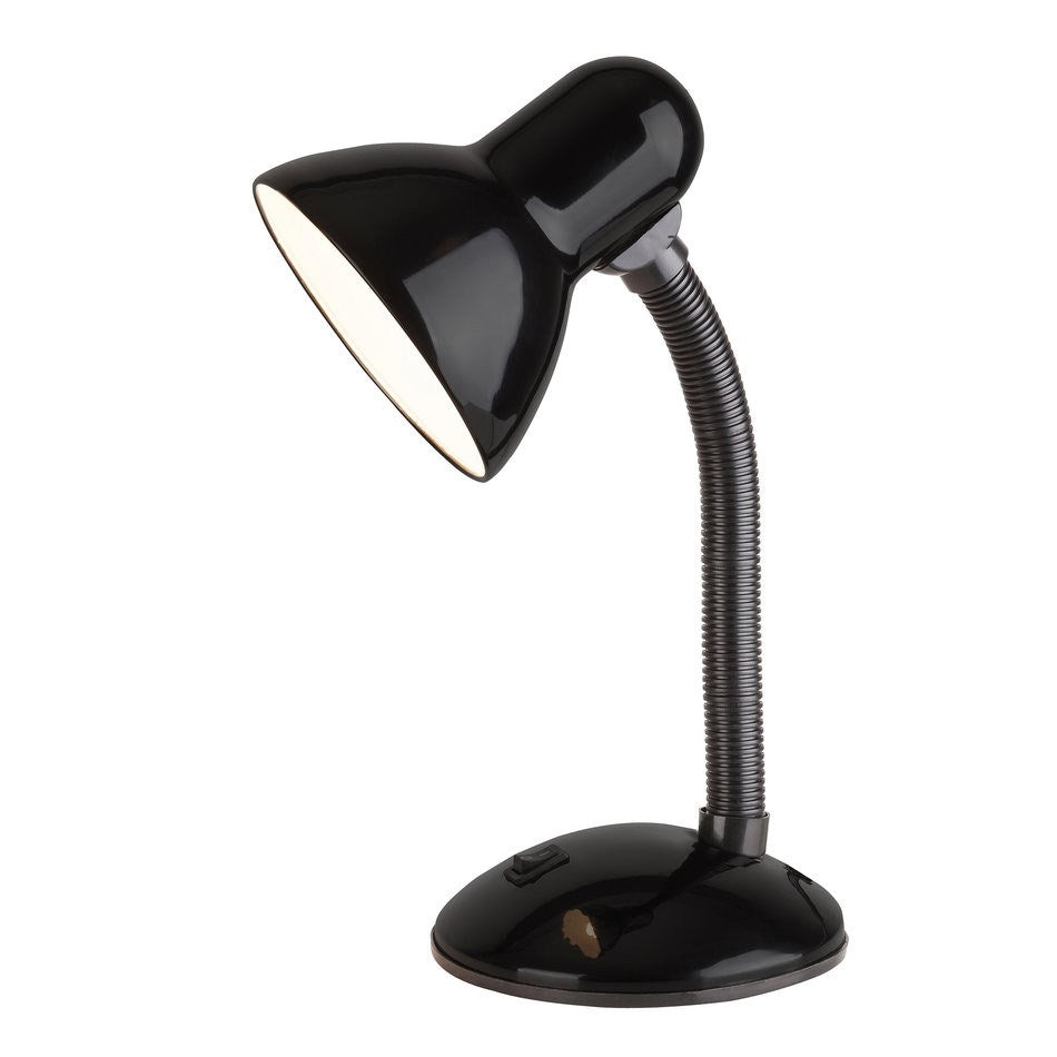 Időtlen megjelenésű asztali lámpa 1 db foglalattal. 23 cm széles, 34,5 cm magas, fekete színű műanyag lámpatest és pozícionálható lámpabúra. A lámpatest E27-es foglalatú, max. 40W teljesítményű energiatakarékos fényforrással is használható.