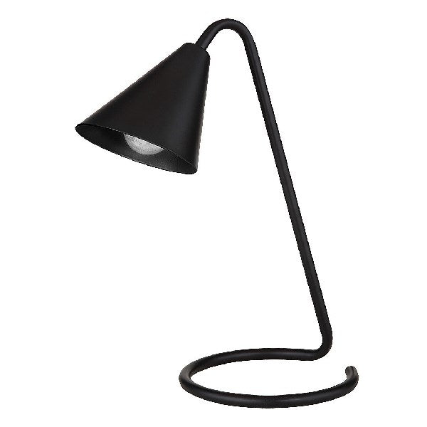Az indusztriális stílusban készült Monty asztali lámpát elsősorban a hálószobába vagy a dolgozószobába ajánljuk. A fekete színű lámpa anyaga teljes egészében fém, különlegessége pedig az alul kör alakban meghajlított szár, amely a hagyományos dísztalp helyett biztosít stabil megtámasztást a lámpának. A fekete búra lefelé szélesedő, gúla formájú. A Monty egy darab, legfeljebb 40 W teljesítményű fényforrással használható, a foglalat típusa E14. Ha a hálószobában helyezzük el a lámpát, meleg fehér fényű fényforrást ajánlunk hozzá, míg a dolgozószobában praktikusabb lehet egy természetes fehér fényű fényforrás használata. Az asztali lámpa szélessége 270 mm, magassága 345 mm. Ezt a modellt fényforrás nélkül szállítjuk.