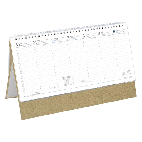 Asztali naptár kép nélküli TOPTIMER T051 álló fehér lapos bézs 2026.