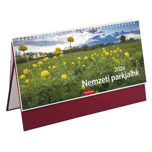 Asztali naptár képes TOPTIMER T054 álló fehér lapos Nemzeti park bordó 2026.