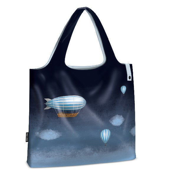 Bevásárlótáska újrahasznosított anyagból (egy táska kb. 3 db visszaforgatott PET palack felhasználásával készül), anyaga vízlepergető, 22 literes, 10 kg- os terhelhetőségű. A fül magassága 27 cm kényelmes, könnyen vállravehető. Praktikus, a plusz kis zsebbe összehajtogatható, így kis helyen elfér.Használható kézben hordva vagy vállra akasztva.