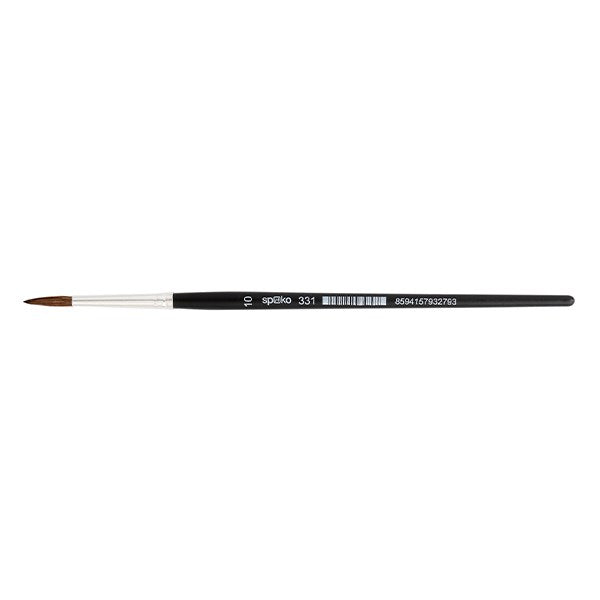 Minőségi, kerek ecset finom és természetes szálakkal. Fekete, lakkozott, fa nyél, nyomtatott logóval, vonalkóddal és mérettel. A krómozott sörtefogó nem korrodál és megtartja a sörtéket ismételt kimosás esetén is. Ideális iskolásoknak és szabadidős alkotáshoz egyaránt.