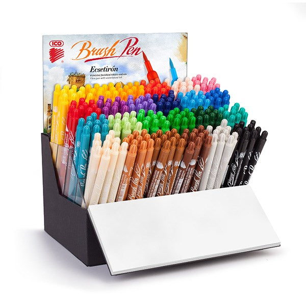 Ecset jellegű, hajlékony írócsúccsal ellátott rostirón, rajzolásra, nagyobb felületek színezésére. 24 féle élénk színben.
