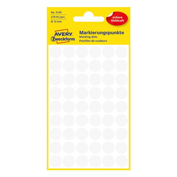 Etikett AVERY 3145 jelölőpont 12mm fehér 270 darabos