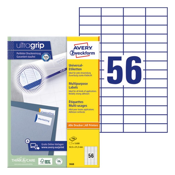 Etikett AVERY 3668 52,5x21,2mm univerzális 5600 címke/doboz 100 ív/doboz