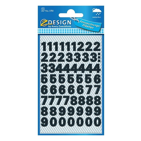 Etikett AVERY 3781 időjárásálló öntapadós számok fekete 2 íves