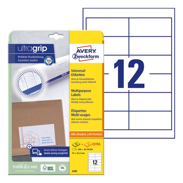Etikett AVERY 4781 97x42,3mm univerzális fehér 360 címke/doboz 30 ív/doboz