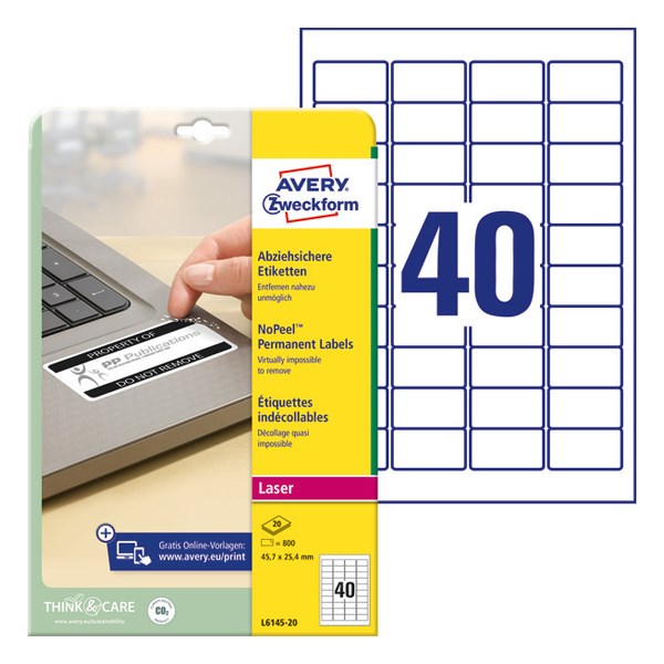 Etikett AVERY L6145-20 45,7x25,4mm laser biztonsági 800 címke/doboz 20 ív/doboz