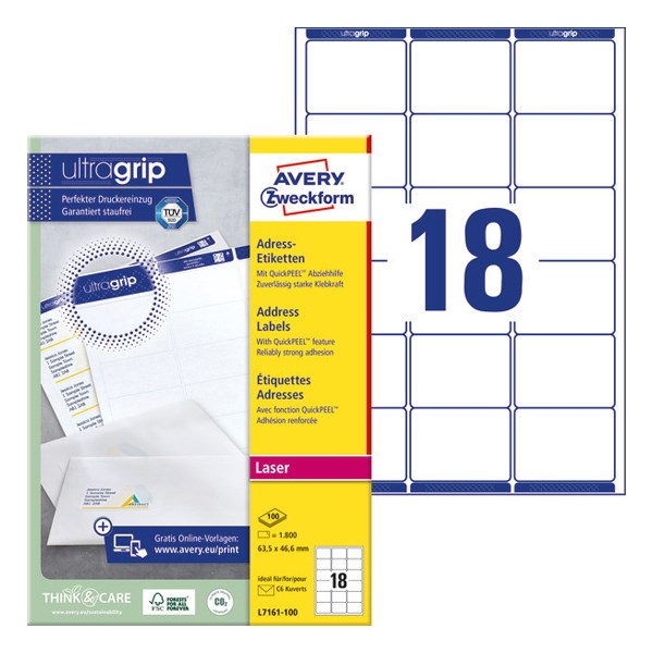 Etikett AVERY L7161-100 63,5x46,6mm fehér 1800 címke/doboz 100 ív/ doboz
