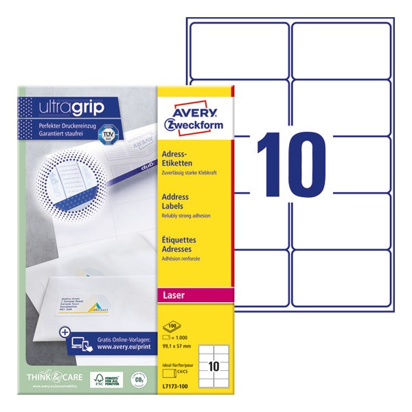 Etikett AVERY L7173-100 99,1x57mm univerzális 1000 címke/doboz 100 ív/doboz