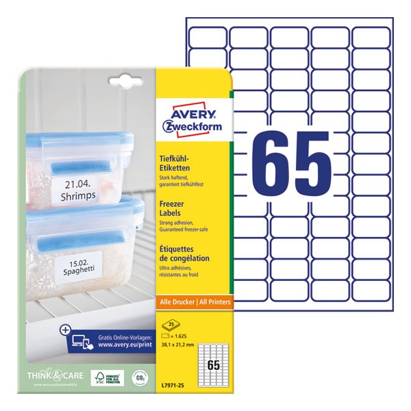 Etikett AVERY L7971-25 38,1X21,2 fagyasztó