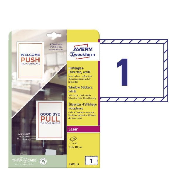 Minőség a címkeszakértőtől: az Avery Zweckform 210 x 148 mm-es méretű, fehér L9002-10 ablakmatricái megbízhatóan tapadnak üvegre és átlátszó műanyagra, de könnyen eltávolíthatók anélkül, hogy ragasztómaradványokat hagynának maguk után. Az ablakmatricák belülről kerülnek felragasztásra és kívülről olvashatók, így védve maradnak az időjárás és a manipuláció ellen. Ezek az ablakmatricák ideális megoldást jelentenek a (bolti) kirakatokon, kiskereskedelmi üzletek, éttermek, irodák és közigazgatási épületek üvegajtói, üvegfalakon és pultokon elhelyezett ajánlatok, események, nyitvatartási idők vagy egyéb üzenetek közlésére. Ideálisak pl. új vagy használt autók eladásakor az ablaküvegeken is. (10 matrica/csomag).