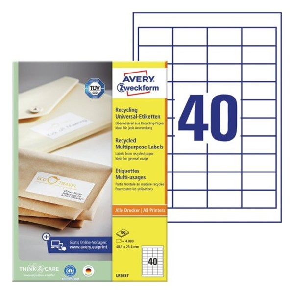 Etikett AVERY LR3657 48,5x25,4mm környezetbarát 4000 címke/doboz 100 ív/doboz