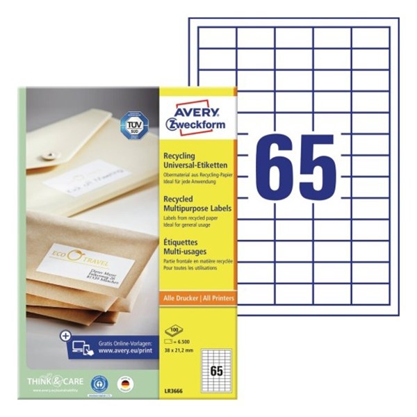 Etikett AVERY LR3666 38x21,2mm környezetbarát 6500 címke/doboz 100 ív/doboz
