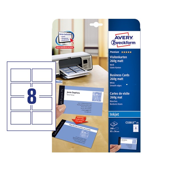 Etikett névjegy AVERY 260 g matt 200 címke/doboz