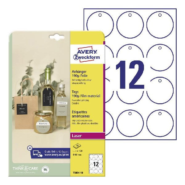 Etikett AVERY T3004-10 60 mm kör függő címke fólia 120 címke/csomag