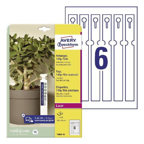 Etikett AVERY T3008-10 250x25 mm átfűzhető kertészeti címke fólia 60 címke/csomag