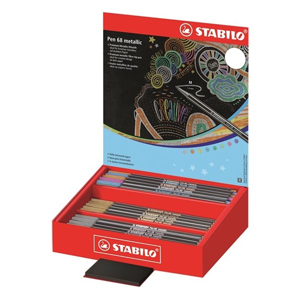 Filctoll STABILO Pen 68 metallic 60 darabos asztali display fekete teszttömbbel