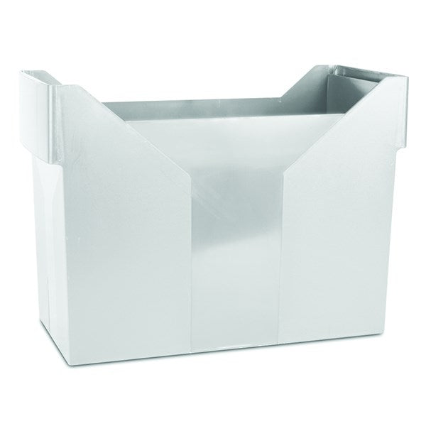 Univerzális műanyag doboz, függőmappákhoz. Kompatibilis az összes szabványos függőmappával. Kapacitás: 20 db függőmappa vagy 3 db A/4 50 mm dosszié vagy gyűrűs irattartó. Belső mérete: 160x330x258 mm. Külső mérete: 163x365x260 mm