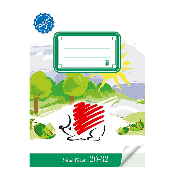 A5-ös méretű, „SULIKÉSZ”, matt fóliával bekötött fűzött füzetek, 32 lap, 8 féle kivitel: vonalas (1.o., 2.o., 3.o., 4.o.), négyzethálós, sima, szótárfüzet, hangjegyfüzet.