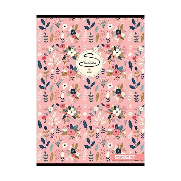 Karton borítású vegyes virágmintás A/4 54 lapos sima füzet, vegyes csomagban.