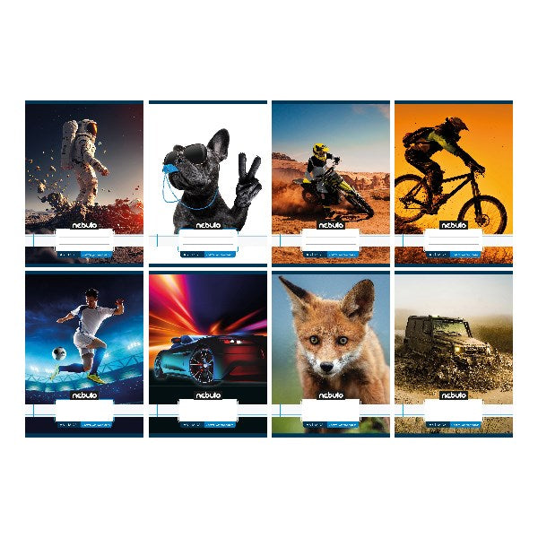 A/5-ös tűzött iskolai füzet 2. osztályos vonalazással, 32 lapos (16-32). 16 db füzet (8 különböző állatos minta, azaz 2db/minta) van egy csomagban. 70 g-os füzetlapok és 200 g-os műnyomó borító fényes fóliával.