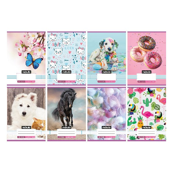 A/5-ös tűzött iskolai füzet 2. osztályos vonalazással, 32 lapos (16-32). 16 db füzet (8 különböző vagány minta, azaz 2db/minta) van egy csomagban. 70 g-os füzetlapok és 200 g-os műnyomó borító fényes fóliával.