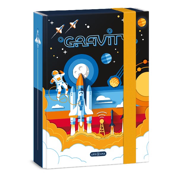 A/5 méretű füzetbox. Kemény, tartós kartonból, 4 cm-es gerinccel, fényes fóliával, 7 mm széles gumipánttal. Belseje egy színnel nyomott. Füzetek, iratok tárolására .