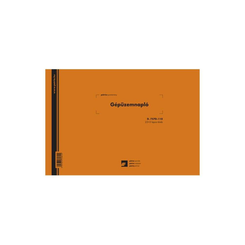 Gépüzemnapló A/4 25x3lapos tömb, fekvő Pátria