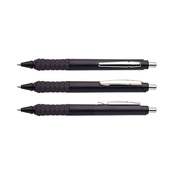 Nyomógombos mechanikával működő golyóstoll, cserélhető X-20 betét, írásszínnel megegyező tolltest, kényelmes, gumi fogórész, nikkelezett fém klipsz, műanyag nyomógomb. Vonalvastagság: 0,5 mm, íráshossz: 2500 méter.