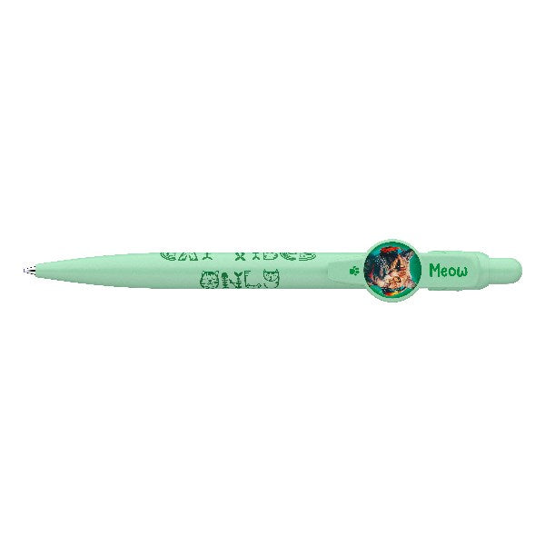 Cicás motívumokkal díszített nyomógombos mechanikával működő golyóstoll 0,8 mm-es kék színű golyósbetéttel.