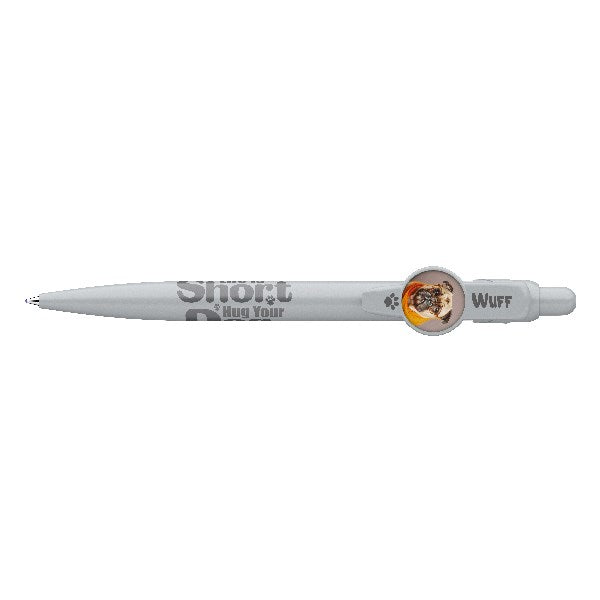 Kutyás motívumokkal díszített nyomógombos mechanikával működő golyóstoll 0,8 mm-es kék színű golyósbetéttel.