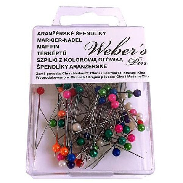 Gombostű WEBER`S műanyag dobozban színes fejjel