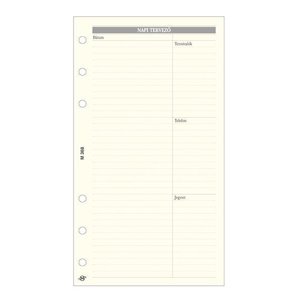 Gyűrűs kalendárium betét SATURNUS L368 bianco napi tervező sárga lapos