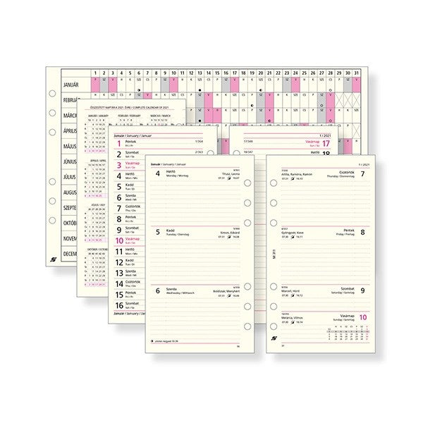 Gyűrűs kalendárium betét SATURNUS M311 heti sárga lapos 2025.