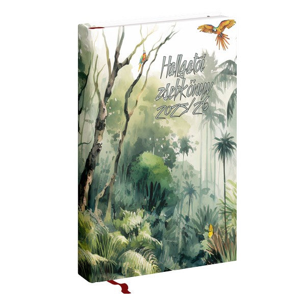 Tartalom: 30 oldal terjedelemben információs blokk, órarend, vizsgatervező, félévi tanulmány oldalak, 108 oldal heti beosztású naptár(2025. augusztus 18-tól 2026. augusztus 23-ig), 14 oldal olvasmányok, tippek, tapasztalatszerzés, fontos dátumok és egyéb történések rögzítésére alkalmas segítő táblázatok, 8 oldal vonalas és kockás jegyzetoldalak