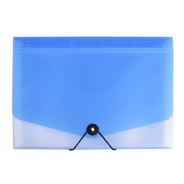 Polipropilénből készült, 13 rekeszes, A4-es méretű irattartó, tetszetős gumis záródással,és regiszterrel. Praktikus iratok tárolására, rendszerezésére, szállítására. Méret: 329x243x30 mm, Csomagolási egység: 1 db fóliázva, 25 db/karton