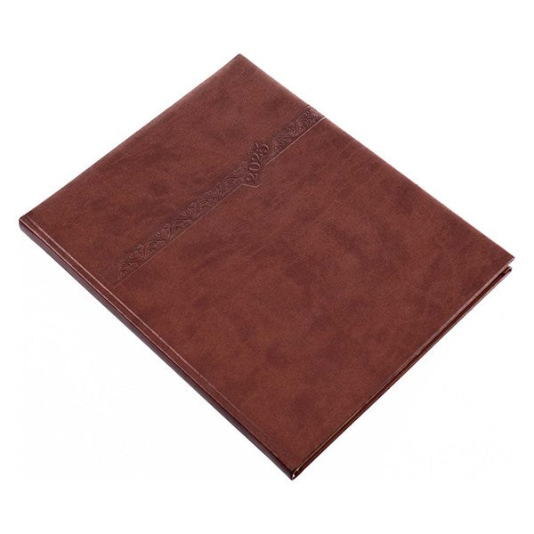 Exkluzív varrott műbőr borító. Présfólia és vaknyomással emblémázható. <br> Sárga papíros, cérnafűzött, A/4 heti beosztású, 144 oldalas, sarokperforált, jelzőszalagot és térképet tartalmaz.