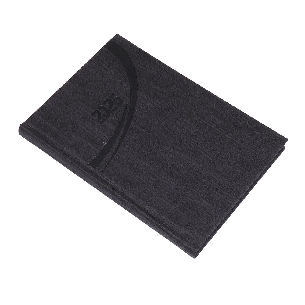 Fashion típusú, merészen struktúrált felületű, magas minőségű műbőr borítás, vaknyomással emblémázható. Fehér papíros, cérnafűzött, A/5 heti beosztású, 144 oldalas, sarokperforált, jelzőszalagot tartalmaz.