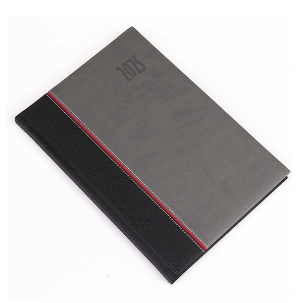 Fehér papíros, cérnafűzött, B/5 heti beosztású, 144 oldalas, sarokperforált, jelzőszalagot tartalmaz.