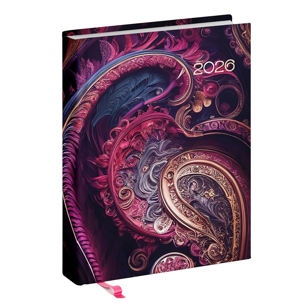 Határidőnapló REALSYSTEM Librobello "Hölgyeknek" B/6 napi fehér lapos 3D lakk+ élfestés Fraktál 2026.