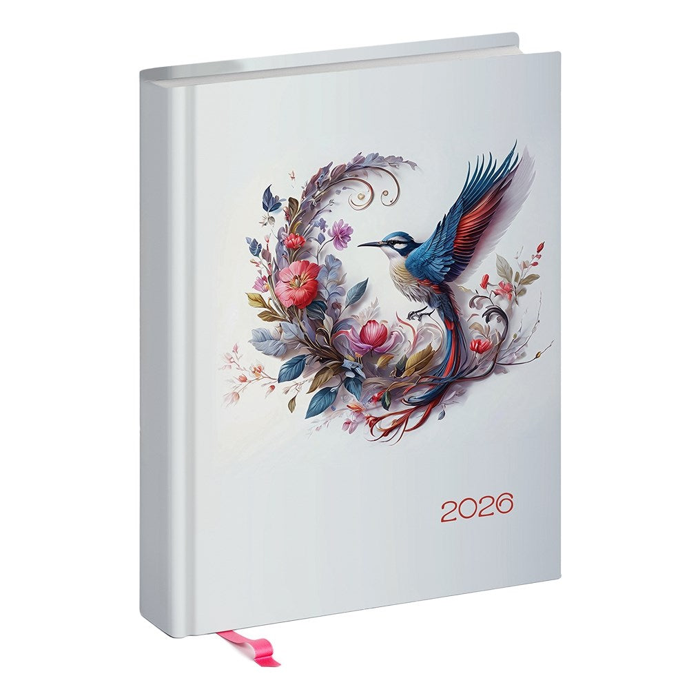 Határidőnapló REALSYSTEM Librobello "Hölgyeknek" B/6 napi fehér lapos 3D lakk Kolibri 2026.