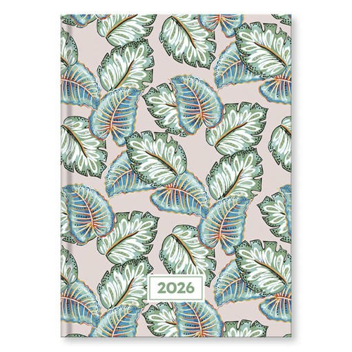 Tervezd meg a napjaidat stílusosan ezzel a friss és élénk designnal rendelkező A/5 méretű 2026-os határidőnaplóval. A borító rózsaszín hátérrel és különböző árnyalatú, részletesen megrajzolt levelekkel igazán figyelemfelkeltő. A levelek színei, mint a zöld és a kék, elegáns kontrasztot alkotnak, miközben a fehér vonalak és pontok különleges mintát adnak neki. Az egész borító vidám, mégis kifinomult hatást kelt, ami friss energiát ad a napló használójának, tökéletes választás lehet irodai használatra, de akár ajándéknak is kiváló.