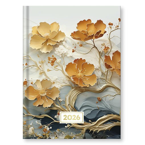 Tervezd meg a napjaidat stílusosan ezzel az elegáns B/6 méretű 2026-os határidőnaplóval. A határidőnapló elegáns, művészi borítóval rendelkezik, amelyet arany és réz árnyalatú, élethű virágmotívumok díszítenek. A részletgazdag grafika különleges, prémium megjelenítést biztosít. Tökéletes választás lehet irodai használatra, de akár ajándéknak is kiváló.