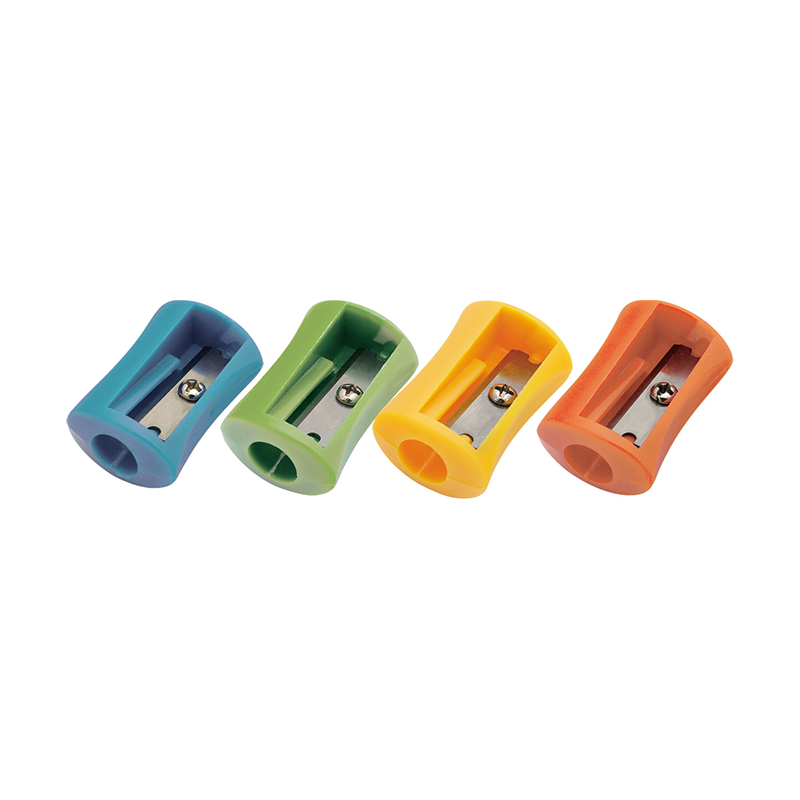 Áttetsző, színes műanyagból készült 1 lyukú hegyező forgácsgyűjtő tartállyal.