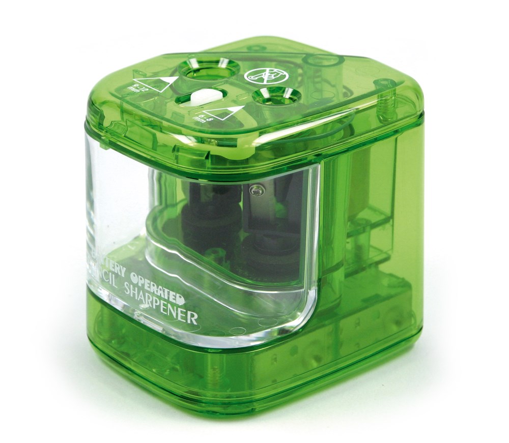 Elemes hegyezőgép, működtetés 4 db ceruzaelemmel, normál és vastag, grafit- valamint színes ceruzák hegyezéséhez.