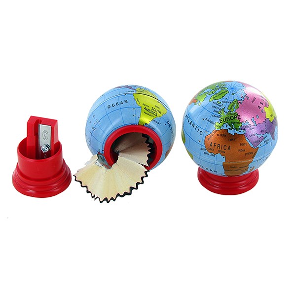 1 lyukú, tartályos, földgömb formájú hegyező, normál méretű grafit- és színes ceruza hegyezéséhez.