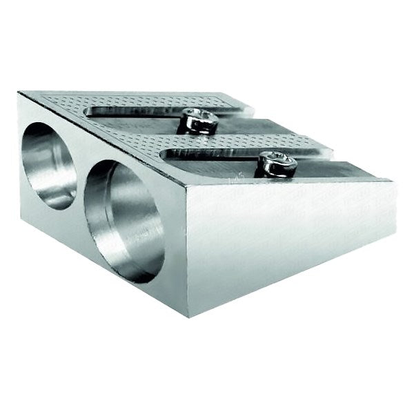 Fém test, kétlyukú faragó normál és vastag ceruzák hegyezésére, fém pengével (Made in Germany), hatszögletű, háromszögletű és kerek ceruzákhoz
