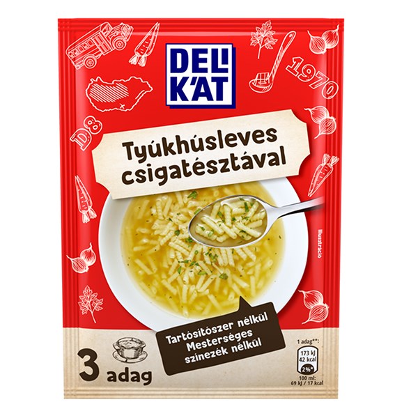 A Delikát immár nemcsak ételízesítőjével teszi különlegessé a házias fogásokat. Az új főzős levesekkel elhozza a magyar háztartások legnépszerűbb receptjeit könnyen elkészíthető formában.