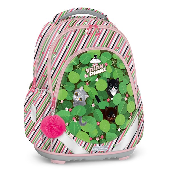 Hátizsák formájú iskolatáska, amely ideális kisiskolásoknak. Ergonómikus kialakítású, szellőztető barázdákkal teli és műanyag merevítésű hátkiképzéssel. Puha, méretre állítható vállpántokkal, amelyekekkel szabályozható, hogy mennyire álljon feszesen a gyerek hátához simulva a táska. A hátizsák három nagy cipzáras rekesszel rendelkezik,az elsőben toll- és igazolvány tartó rekesz található. Oldalán két gumis zsebbel a kulacs részére. Alja tartós és kemény textillel bevont műanyag. Nagy felületű fényvisszaverő elemekkel elől, oldalt és a vállpántokon. Tetején fogantyúval. Ajándék pompom a táskához. Mérete: 330x430x220 mm. Súlya: 0,9 kg. Táska űrtartalma: 23 l. Terhelhetőség: 10 kg-ig. 3 év garancia.